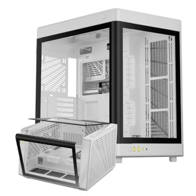 GAMDIAS NESO P1 White Full Tower ATX Case One Touch Swing Open Panoramic Tempered Glass Panel Dual Cahmber Orientation High Airflow Cable Managment Spacious Interior