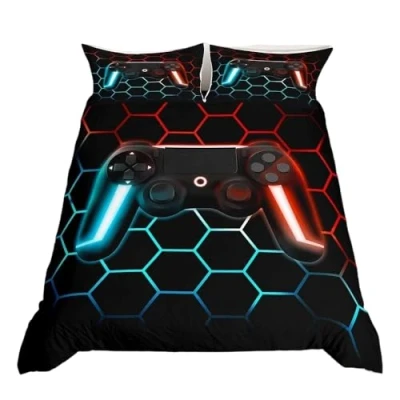 Game Comforter Cover For Boys Gamer Duvet King Lightweight,Teens Modern Gradient Gaming Bedding Set Home Decor Goemetric Honeycomb Bedspread + 2 Pillowcase