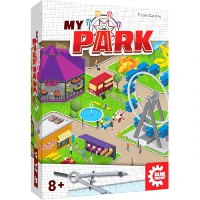 My Park is a small tile game with great attractions. Build your own amusement park and score points with foresight and good planning! Whether exciting roller coasters, cool arcades or tempting takeaways - try to buy the perfect attractions for your park through skilful drafting. But the money is limited! If you do not adhere to the project plan and the order when placing, you have to expect losses. After all, no one wants to have fun in a park that is only half completed! Number of players: 2-5 Game duration: approx. 15 minutes. Recommended age: 8 years and up. From Game Factory – games for family and friends., Manufacturer: Game Factory