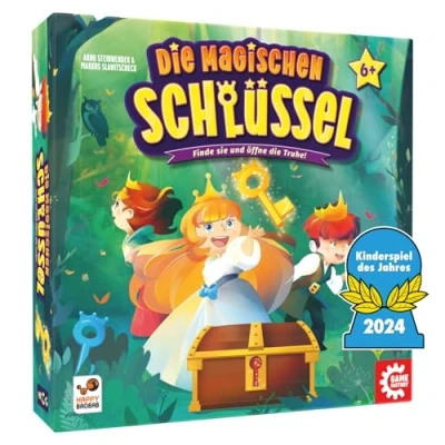 Children's game of the year 2024 "The Magic Keys" - an enchanting dice game that provides fun and enthusiasm for the whole family with loving illustrations, a fairytale 3D construction and a golden treasure chest Dice deep into the forest with daring and collect as many keys as possible. But not all keys keep their promise! Does your key open the large treasure chest? Only the golden key unlocks the chest with certainty - this is at the very end of the risky path and rewards daring and happiness with a treasure full of gems. Game duration: approx. 15 minutes. Number of players: 2-4 Recommended age: 6 years and up., Manufacturer: Game Factory