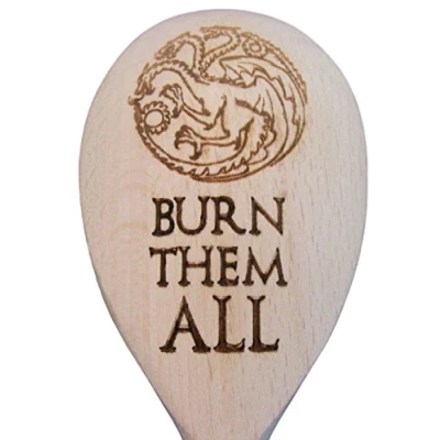 Game of Thrones Inspired Wooden Baking Spoon Novelty Wood Kitchen Cooking Birthday Present Gift Laser Engraved (Wooden Burn Them All Spoon)