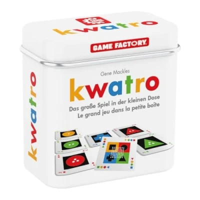 GAMEFACTORY 646195 Kwatro Mini Card Game in Handy Metal Tin Tile Mix for Children and Adults Travel