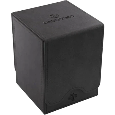 Gamegenic Squire 100+ XL Convertible Deck Box Card Storage with Removable Cover Clips Holds 100 Double Sleeved Cards in Extra Thick Inner Sleeves Black Color Made