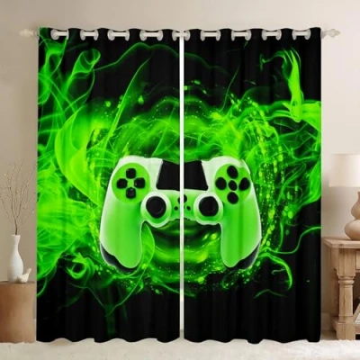 Games Curtain for Gaming Bedroom Living Room Gamer Darkening Curtains Kids Boys Video Game Gamepad Thermal Insulated Window Drapes Console Controller Green W46*L54