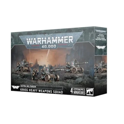 Games Workshop - Warhammer 40,000 - Astra Militarum: Krieg Heavy Weapons Squad 4 plastic miniatures for Warhammer 40,000 Unleash devastating heavy weapons Can be equipped with your choice of lascannons, Krieg heavy flamers, or twin Krieg heavy stubbers - Includes a Fire Coordinator to support the squad and direct their fire Plastic Model Kit