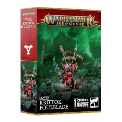 Games Workshop - Warhammer - Age of Sigmar - Skaven: Krittok Foulblade A cruel and calculating Clawlord of Clans Verminus Wield the deadly daemon-blade known as Doomfang Hurl your Skaven forces into battle as you command them to victory Plastic model kit - requires assembly and painting, Manufacturer: Games Workshop