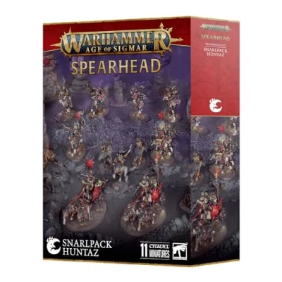 Games Workshop - Warhammer - Age of Sigmar - Spearhead: Gloomspite Gitz - Snarlpack Huntaz 11 plastic miniatures for Warhammer Age of Sigmar A selection of key Gloomspite Gitz units that make a complete Spearhead force Includes a vicious Snarlboss and his Wolfgit Retinue, two units of Snarlpack Cavalry, and a pair of Sunsteala Wheelas Plastic Model Kit, Manufacturer: Games Workshop
