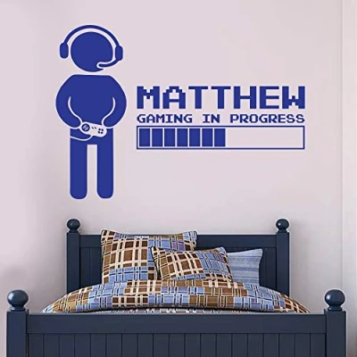 Gaming In Progress Personalised Name Wall Sticker Gamer Bedroom Art Decal Mural Kids (120cm height x 100cm width)