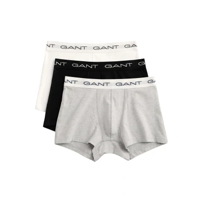 A three-pack of trunks crafted in cotton jersey with a hint of stretch. Cut in a close fit with a short leg length and a regular waist, these trunks come in solid, basic colors and are detailed with repeating GANT logos at the elastic waistband. Close fit Short leg length Regular waist Jacquard knitted waistband Material: Cotton 95%, Elastane 5% 900013003