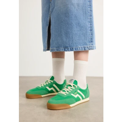 Fashionable sneaker in a retro 90s look made from nylon with suede details and eyecatching GANT logo branding on the tongue, on the side and heel area. With a leathercovered insole and textile lining. Authentic retro construction with rubber outsole and signature toe bumper. By purchasing this product you support responsible leather manufacturing by the Leather Working Group. Sale | Upper material: suede/Lining: synthetics/Sole: synthetics/Insole: textile | Sale order at Zalando UK! Size: 4. Color: Lavish green.