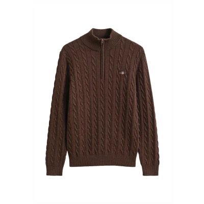 GANT Cable HALF Jumper, Men's, Size: Large, Brown melange