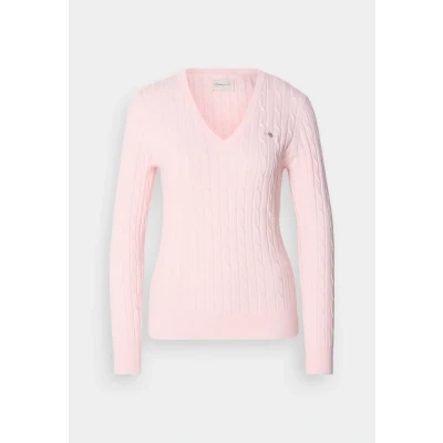 GANT Cable V NECK Jumper, Women's, Size: Large, Faded brick