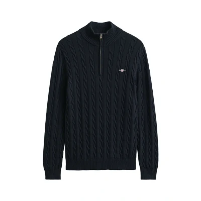 GANT Cotton Cable Half Zip, Evening Blue, XXXL