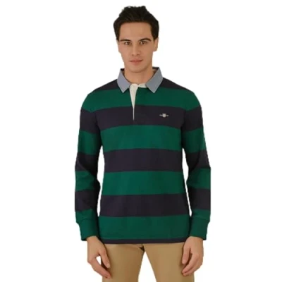 Gant Heavy Rugger Shield Longsleeve Polo Shirt Stripes Navy Green Dark Blue size XXL