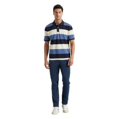 GANT Men's Block Stripe SS Polo Shirt, Evening Blue, L