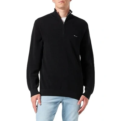 GANT Men's Cotton Pique Half Zip Pullover, Black, Standard, S