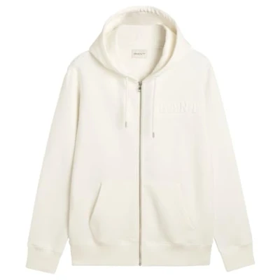 GANT Men's Embossed Full Zip Hoodie Sweatshirt, Eggshell, M