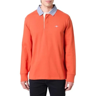 GANT Men's Reg Chambray Heavy Rugger Polo Shirt, Deep Orange, L