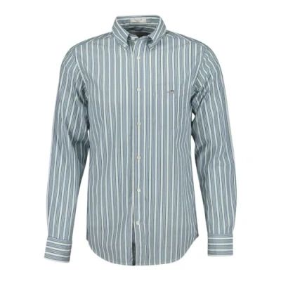 GANT Men's Reg Poplin Stripe Shirt, Deep Forest Green, L