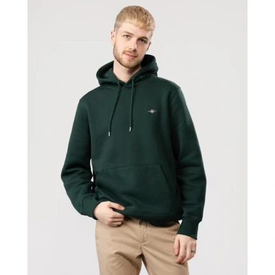 GANT Men's Reg Shield Hoodie Hooded Sweatshirt, Tartan Green, S
