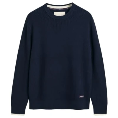 GANT Men's Ribbed Cotton C Neck Pullover, Evening Blue, S