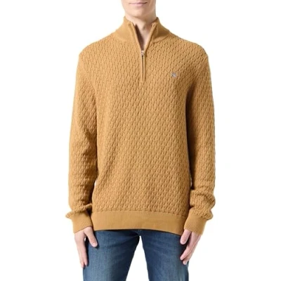 GANT Men's Textured Cotton Half Zip Pullover Sweater, Dark Almond, M
