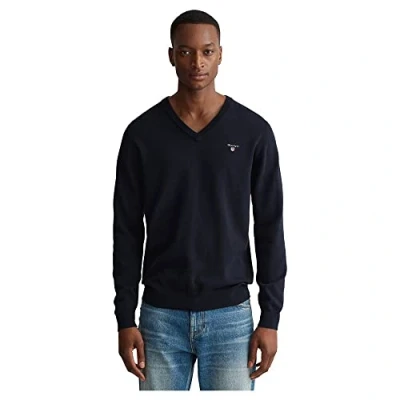 Suitable ShopGant Pullover V-Neck Navy Gant Pullover V-Neck Navy in de kleur Blue en Dark Blue met een pasvorm Regular-Fit is gemaakt van Cotton met een Plain dessin.