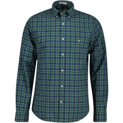 GANT Mens Classic Poplin Check Forest Gre Long Sleeve Shirt Green M