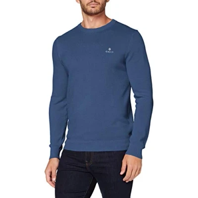 GANT Men's Cotton Pique C neck Pullover Sweater , Denim Blue Mel,3XL