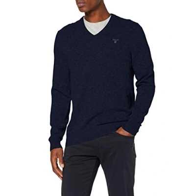 GANT Men's Extra fine Lambswool V Neck Sweater, Dark Navy Melange, XXXL