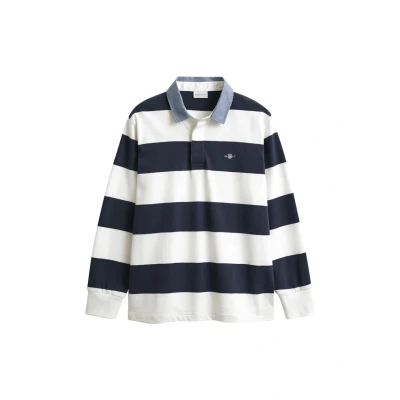 GANT Men's Reg Chambray Stripe Heavy Rugger T Shirt, Eggshell, 3XL