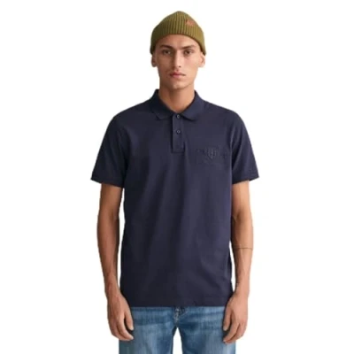 GANT Men's Reg Tonal Shield Ss Rugger Shirt, Evening Blue, M