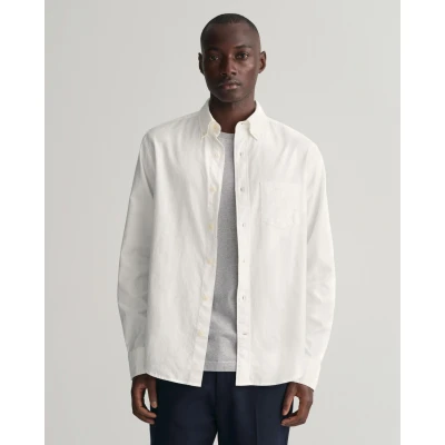 Crafted out of 100% cotton, this Oxford shirt is designed for a regular, untucked fit and features a button-down collar, adjustable cuffs and our signature box pleat with a locker loop on the back. This classic shirt is also embellished with a GANT logo embroidered at the chest pocket for an added touch of detail. Regular fit Button-down collar Box pleat with locker loop at back GANT logo embroidered at chest pocket Model is 6 ft 1.6 in and is wearing size M Organic Cotton 100% 3230233