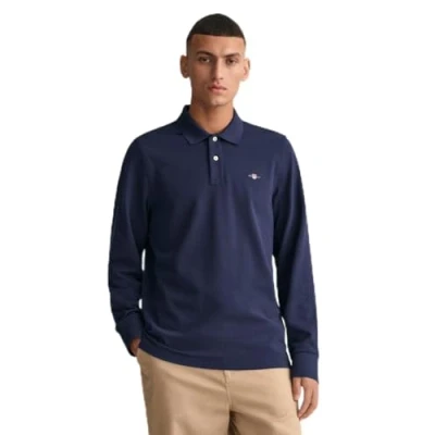 Gant Mens Regular Fit Long Sleeve Shield Logo Pique Rugger Dark Blue Cotton Size X Large