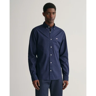 Gant Mens Slim Fit Long Sleeve Poplin Shirt Marine Size X Large