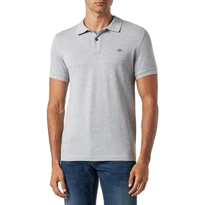 GANT Men's Slim Shield SS Pique Polo Shirt, Grey Melange, XL