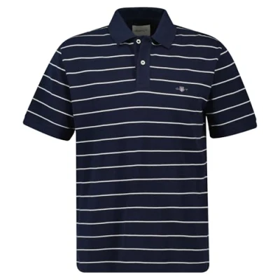 GANT Men's Striped SS Polo Shirt, Evening Blue, L