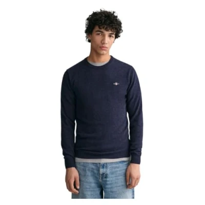 GANT Men's Superfine Lambswool C Neck Pullover Sweater, Dark Navy Melange,