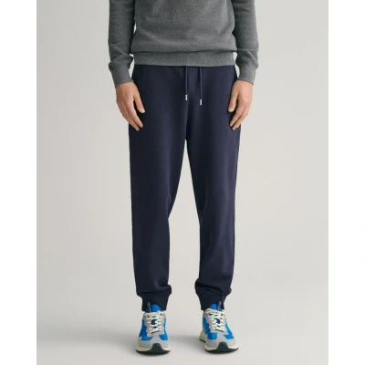 Crafted from a soft cotton polyester blend, these sweatpants are detailed with a ribbed waistband and hem cuffs for a tailored silhouette. Detailed with two front pockets and one back pocket on the right side, these sweatpants are sure to become your go-to loungewear staple. Regular fit Drawcords at the waist GANT branded eyelets and drawstring stoppers GANT graphic embroidered below waistband Material: Cotton 87%, Polyester 13% 2009026