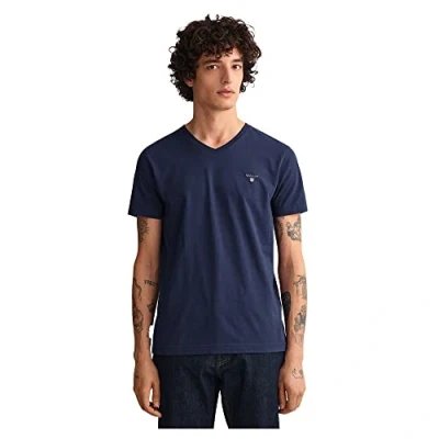 GANT SLIM Shield V NECK Basic Tshirt, Men's, Size: 4XL, Evening blue