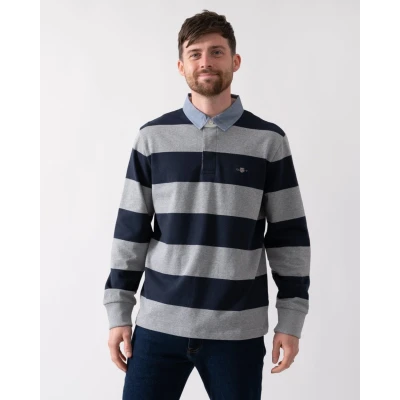 GANT Stripe Heavy Rugger Long sleeved top, Men's, Size: Medium, Grey melange