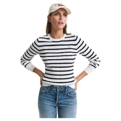 GANT Women's Stretch Cotton Cable Stripe C Neck Pullover Sweater, Eggshell, M