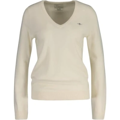 GANT Womens Lambswool V Neck Sweater Cream L