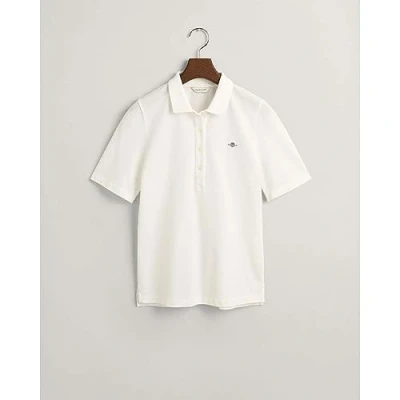 GANT Women's Slim Shield SS Pique Polo Shirt, Eggshell, XS