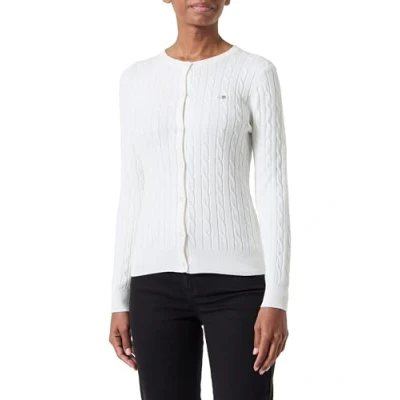 GANT Women's Stretch Cotton Cable Cardigan Sweater, Eggshell, L