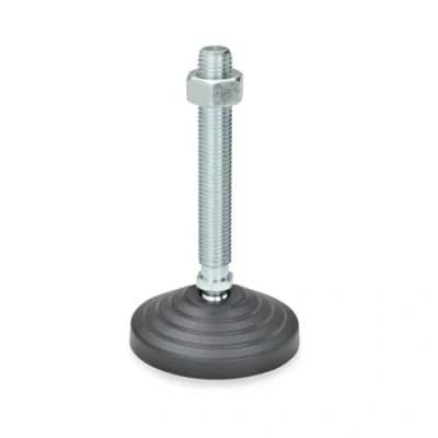 Diameter d1: 80 mm; thread: M12 x 68 Base: plastic thermoplastic (polyamide PA), black, glass fibre reinforced Adjustment spindle: steel, strength class 5.8, galvanised blue passivated Hexagonal nut ISO 4032, steel, galvanised, blue passivated Rubber pad (NBR), 70 Shore A, black, Weight: 0.3747858454 Pounds, Manufacturer: Elesa