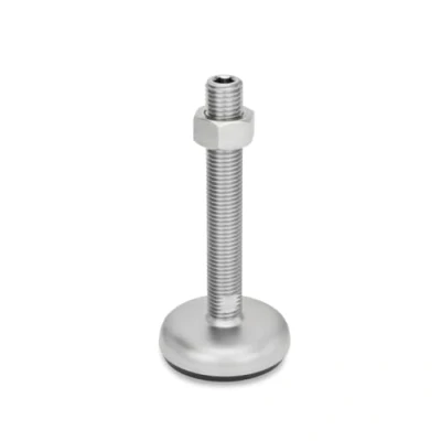 Base diameter: 80 mm; spindle: M16 x 150 The remaining dimensions can be found in the drawing Shape: with nut, hexagon socket at the top and key surface at the bottom Foot plate: stainless steel 1.4301; adjustment spindle: stainless steel 1.4305; hexagonal nut ISO 4032 stainless steel Rubber pad: black, NBR, 80±5 Shore A, Weight: 1.07365121594 pounds, Manufacturer: Ganter Normelemente
