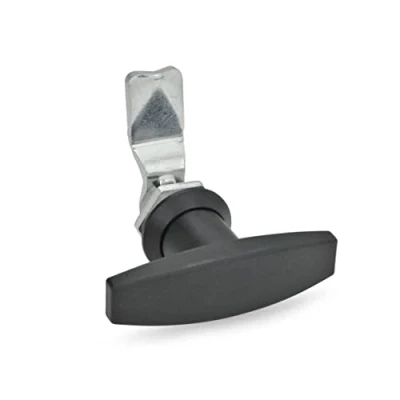 Riegel: a: 28 mm Form ST: Actuating with T-handle Verschluss die-cast housing: Zinc Chrome-plated; Other Part stop ring: Galvanised steel, blue, passivated Control Handle: Plastic (polyamide) Black, Matt, Weight: 0.3086471668 pounds, Manufacturer: Ganter Normelemente