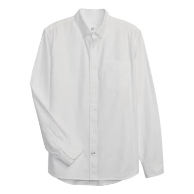 GAP Men's Long Sleeve Oxford Button Down Shirt, White, Large