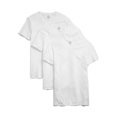 GAP Men's 3 Pack V Neck Tee T Shirt, Optic White, Medium